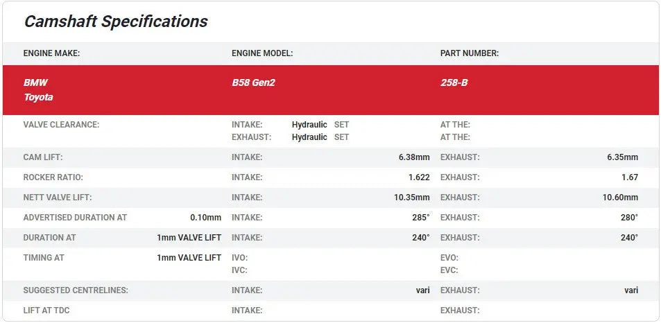 Kelford Cams B58 camshafts are designed for compatibility with the following BMW models equipped with the B58 Gen 2 engine (2017+):